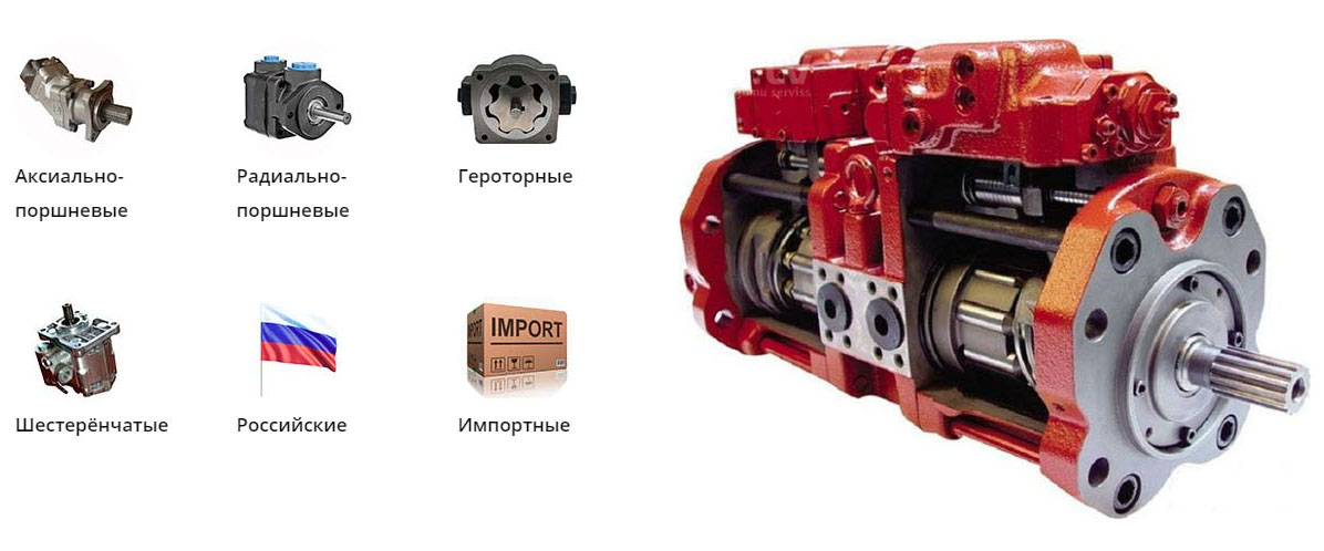 Типы ремонтируемых нами гидронасосов и гидромоторов: